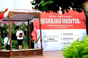 MEMBANGUN JIWA MERDEKA MENUJU BANGSA BESAR Dalam kehidupan sehari-hari, praktek revolusi mental adalah menjadi manusia yang berintegritas, mau bekerja keras, dan punya semangat gotong royong. Revolusi Mental adalah suatu gerakan untuk menggembleng manusia Indonesia agar …