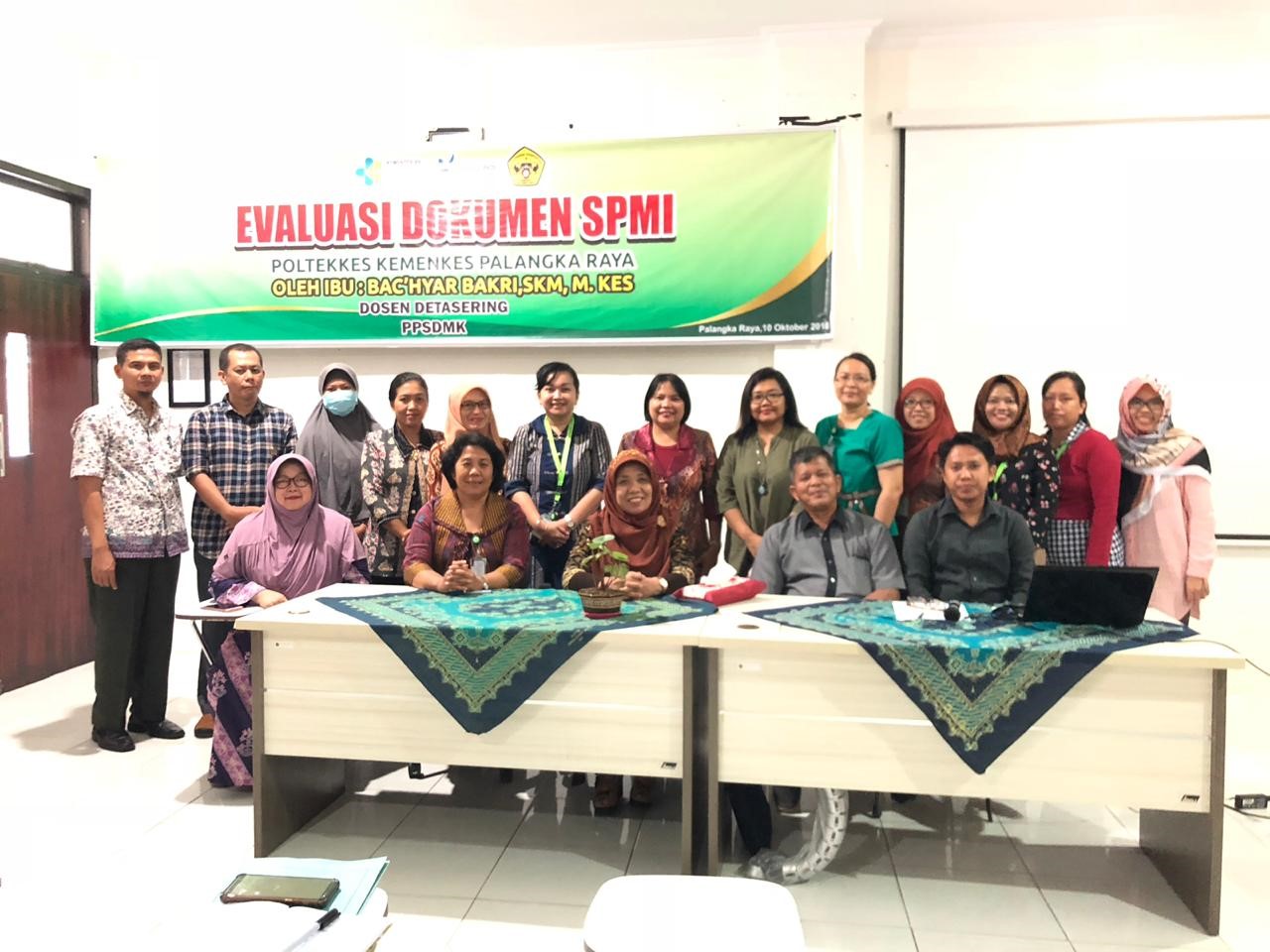Poltekkes Kemenkes Palangka Raya melaksanakan kegiatan Evaluasi Dokumen SPMI Poltekkes Kemenkes Palangka Raya pada tanggal 10 Oktober 2018 di Gedung Baru Perkuliahan Kebidanan Ruang B2 Kampus B Poltekkes Kemenkes Palangka Raya, Jl. George Obos No. 30/32.