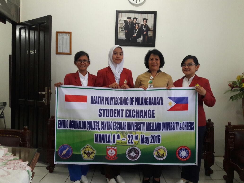 Poltekkes Kemenkes Palangka Raya mengirimkan 3 mahasiswi terbaiknya, Anggun Puja Fitriani (D4 Keperawatan), Diyandra Utami Putri (D4 Kebidanan) & Atlantiara Aditya Putri (D4 Gizi) untuk mengikuti Student Exchange ke Emilio Aguinaldo College, Philippines yg telah bekerja sama dengan Poltekkes Kemenkes Palangka Raya sejak tahun 2015.